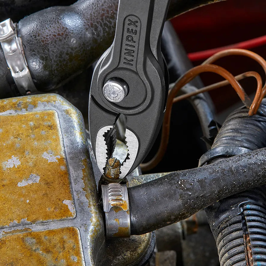 The KNIPEX TwinGrip 200mm Slip Joint Pliers (82 02 200) are a next-generation gripping solution designed for professionals who regularly deal with worn, rounded or stubborn fasteners. Built in Germany from high-grade chrome vanadium electric steel and oil-hardened for durability, these pliers deliver exceptional bite, control and long service life on site or in the workshop.