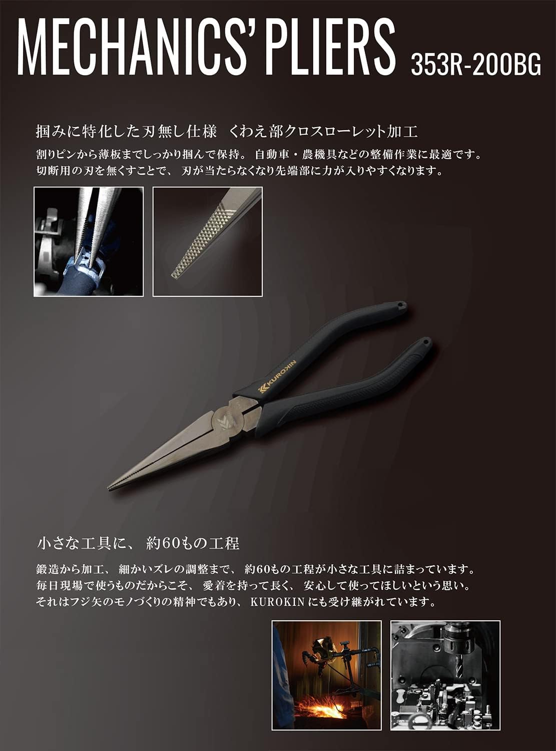 Engineered for professionals who demand precision and control, the Fujiya 353R-200BG is a premium Japanese-made long nose plier designed specifically for gripping performance. Built for mechanics, technicians, electricians and serious tool enthusiasts, this model focuses purely on holding power — with no cutting edge to compromise jaw strength.