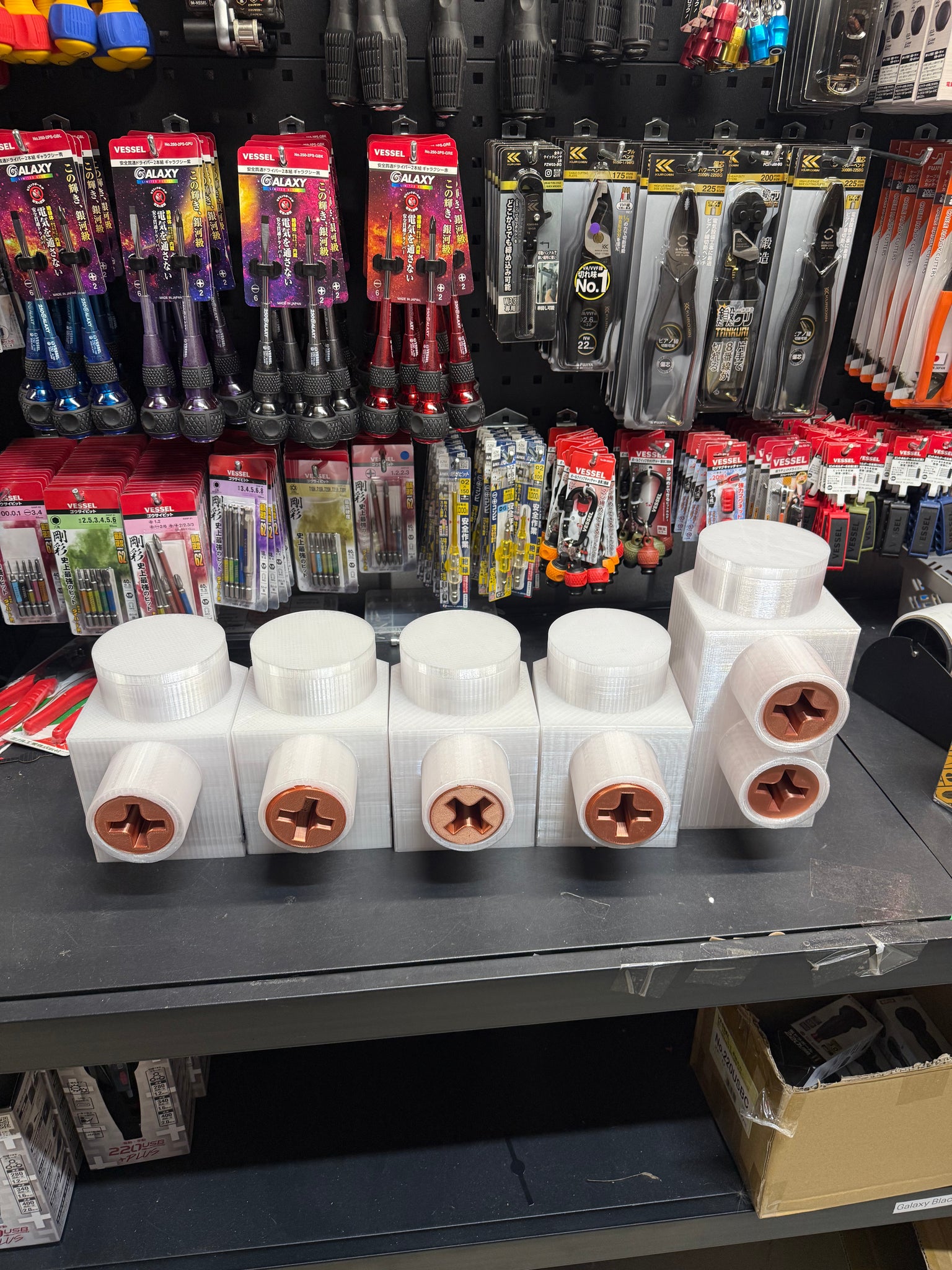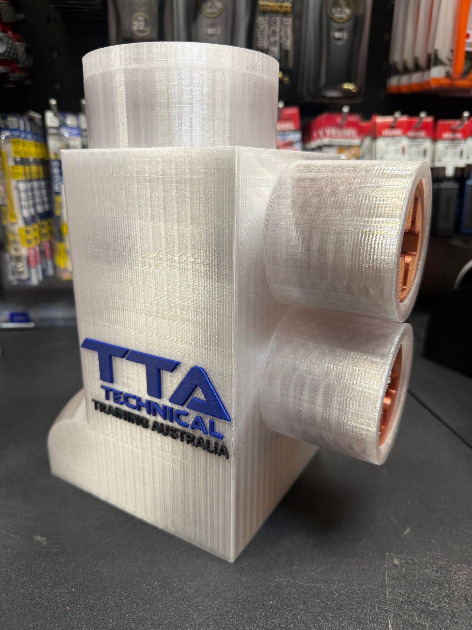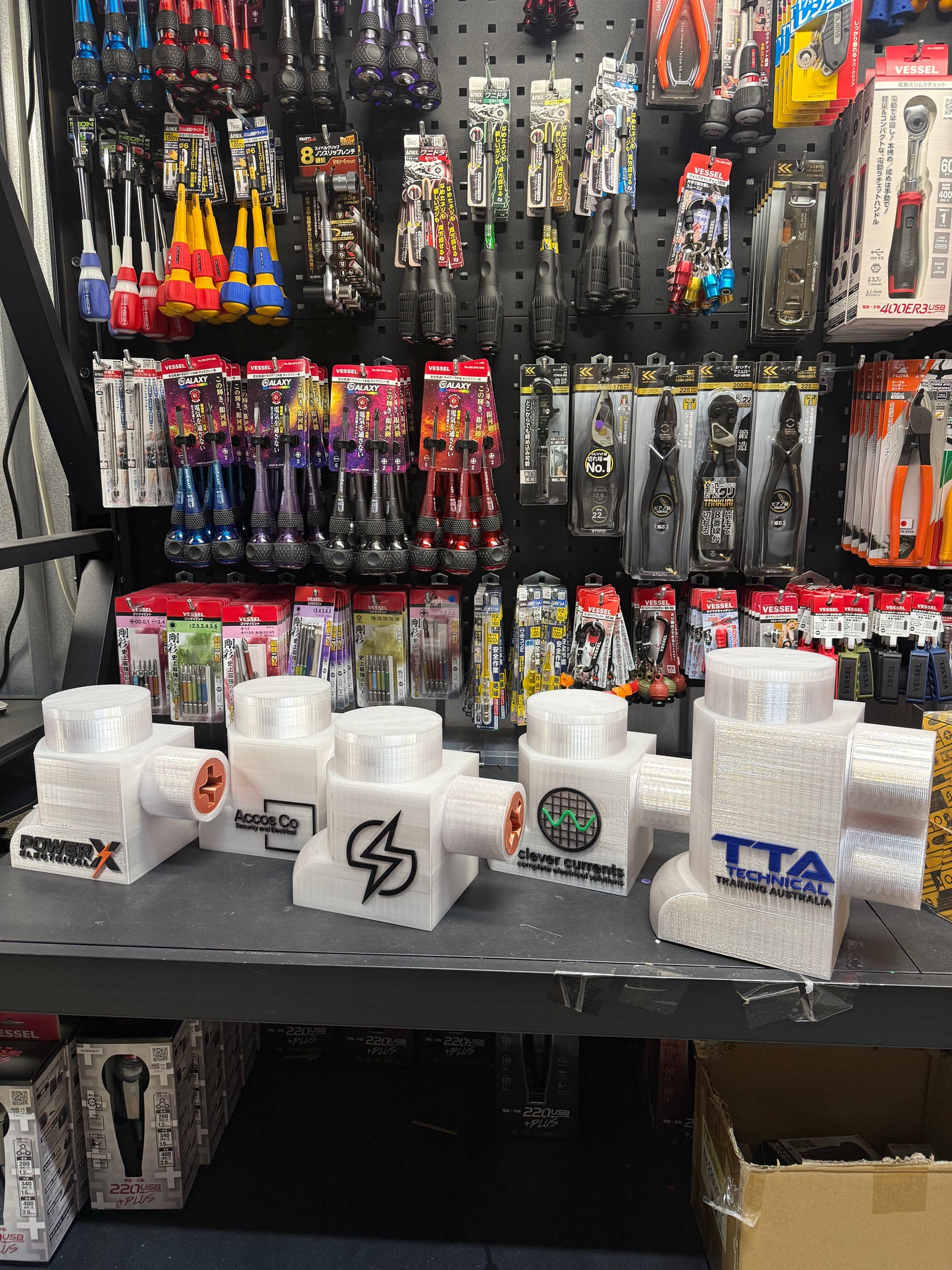 Discover a unique statement piece for your workshop, office desk, reception area, side table, or work van with our Large BP Container, proudly designed and crafted in Australia. Constructed from transparent material, it features a copper-coloured screw that can be easily tightened or loosened using the included large screwdriver. The removable top allows it to function as a practical container, combining style with utility.